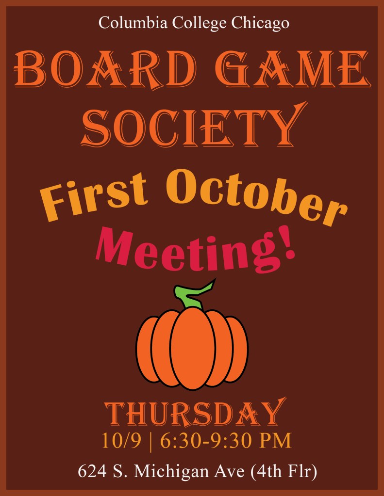 Here’s some art me & my friend Tess have created for the official Columbia Board Game Society Instagram. Art is in order by date beginning with our first post in early September: